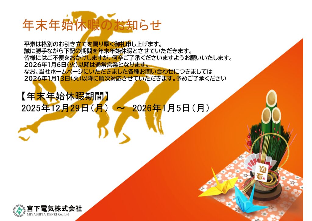 誠に勝手ながら下記の期間を年末年始休暇とさせていただきます。
